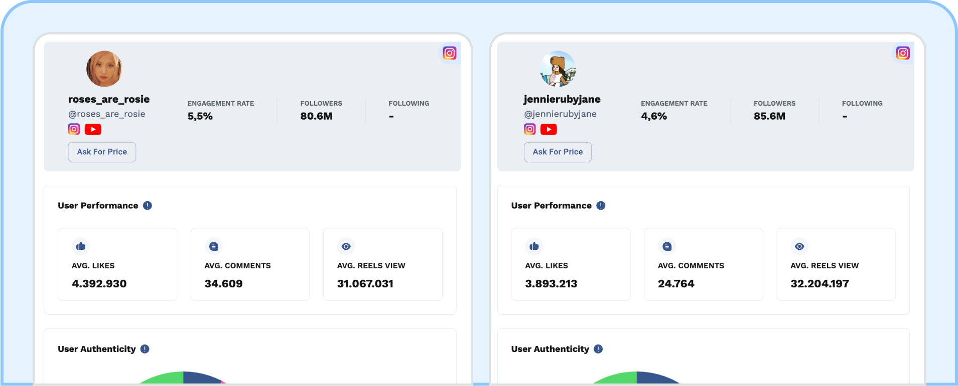 Dengan Analyser, kamu bisa mendapat insights mereka yang mendalam. Bandingkan hingga 10 influencers dari berbagai platform berdasarkan performa, authenticity, dan metrics lainnya. Jangan lupa gunakan Analyser untuk analisis insight yang detail!